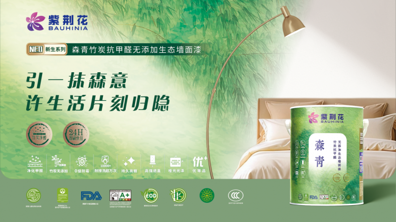 森青(中端:进化呼吸):“森”是叠木成林的艰深之境,层层吸附,如竹炭微孔般建立出会呼吸的生态系统;“青”则源自东方色谱中最沉静而富有生命力的那一笔。“森青”,让墙面好像丛林般具有自从净化的能力,于无声处守护呼吸健康。